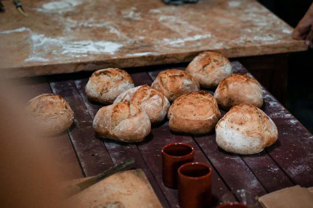 O que é que levo para casa de um workshop de panificação? Levarás para casa o pão que criares durante o workshop, receitas e técnicas completas, conhecimentos sobre a fermentação e a ciência da farinha, e a confiança necessária para continuares a cozinhar de forma independente em casa.