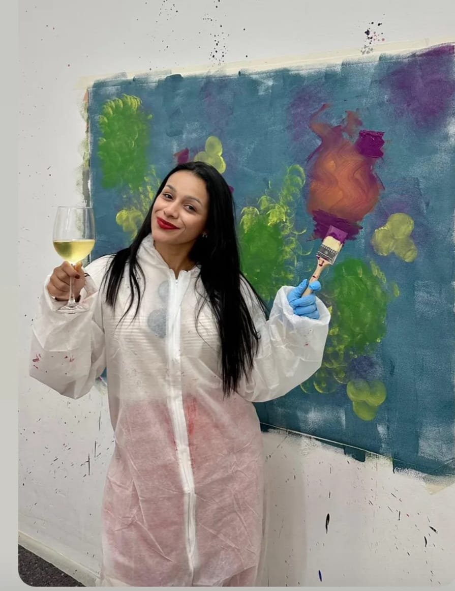 Esta experiência artística libertadora transforma a pintura de um trabalho de cavalete contemplativo num envolvimento físico performativo onde as gotas, os salpicos e os gestos amplos se tornam a própria obra de arte, valorizando a energia expressiva imediata em vez de uma execução controlada e cuidadosa. Esta sessão criativa adequa-se a qualquer pessoa que queira escapar à rotina, experimentar algo novo, explorar a criatividade sem regras ou requisitos de experiência prévia, relaxar, libertar o stress e viver uma experiência artística prática (a solo, em casal ou em grupo) através de uma metodologia de pintura fisicamente envolvente que enfatiza o processo, a espontaneidade e a liberdade expressiva em detrimento da competência técnica ou de resultados pré-determinados.