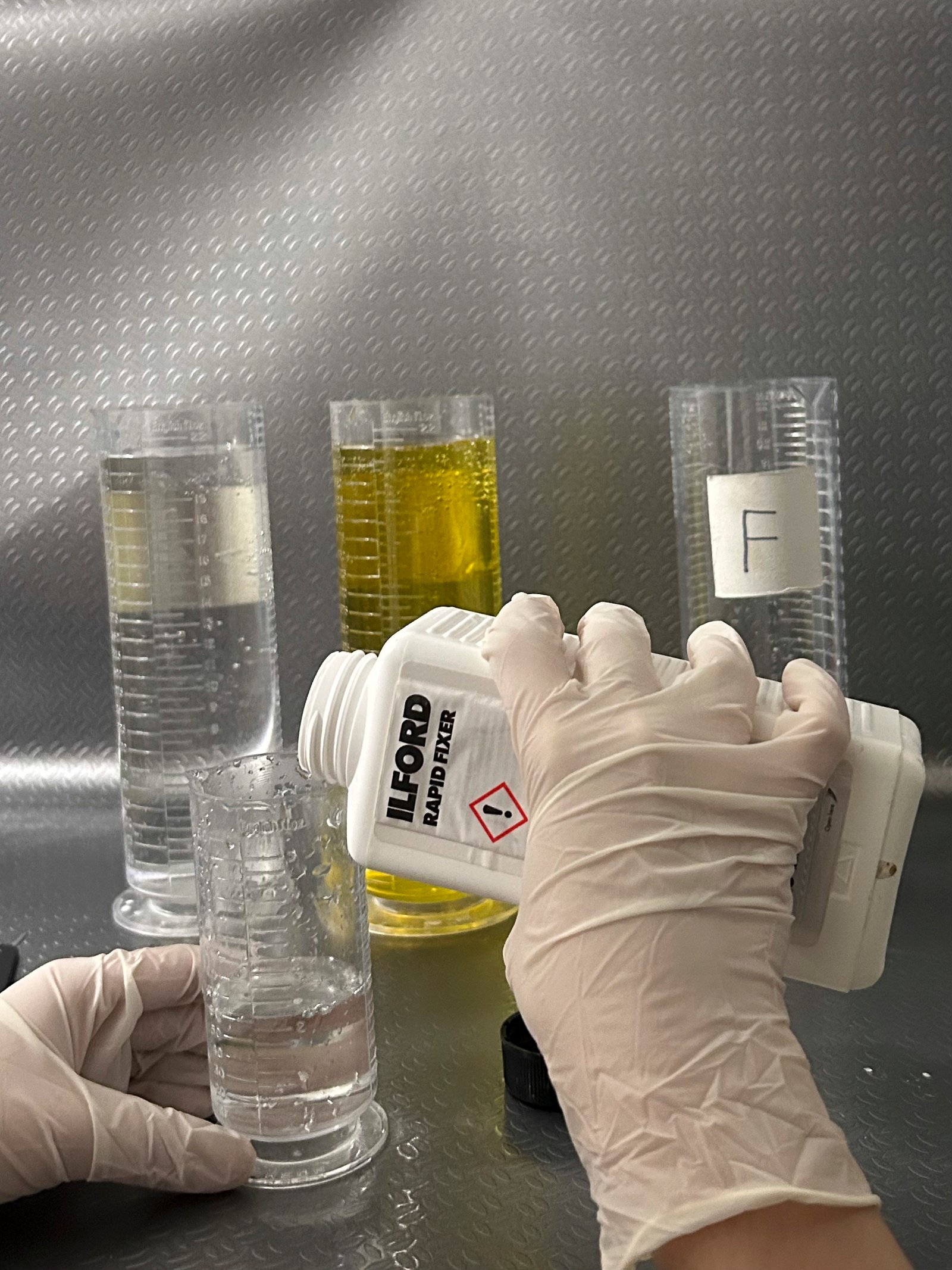 No estúdio, aprenderás a colocar a tua película num tanque de revelação na escuridão total. Depois, revelas a tua película a preto e branco utilizando os químicos tradicionais, desta vez com a luz. Se fores claustrofóbico, há a opção de carregar a película usando um saco de mudança numa sala com luz.