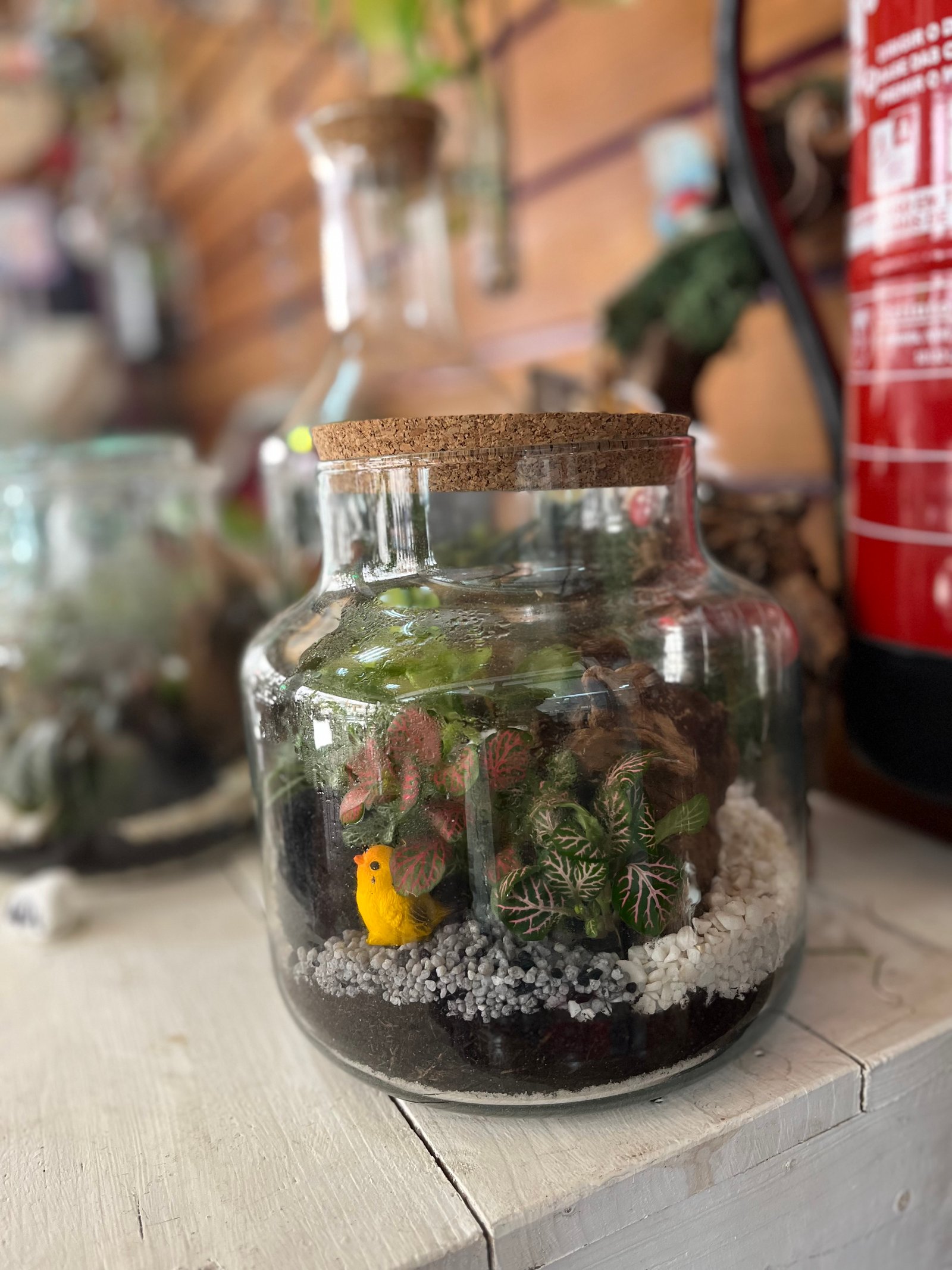 Terrário fechado com acabamento pessoal para levares para casa como arte botânica viva