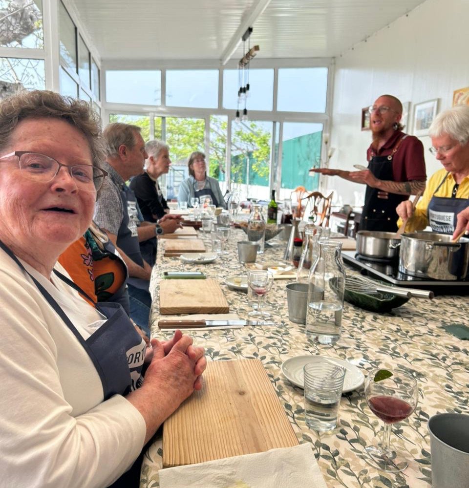 Experiência de cozinha da quinta para a mesa em Évora para quem quer perceber a comida portuguesa de dentro para fora, começando na fonte. Sofia Vieira inicia a sessão na sua quinta, mesmo à saída das muralhas históricas de Évora, recolhendo os legumes que irão cozinhar em conjunto antes de se dirigirem para a cozinha, onde um copo de vinho, queijo local e carnes secas aguardam enquanto começa a verdadeira cozinha. Segue-se uma refeição completa de entradas, peixe, carne e sobremesa, confeccionada inteiramente com ingredientes locais sazonais, utilizando receitas tradicionais portuguesas, incluindo as antigas receitas conventuais de Évora para a sobremesa. A sessão tem uma duração aproximada de 2,5 horas e está disponível para almoços a partir das 11 horas ou jantares a partir das 18 horas.