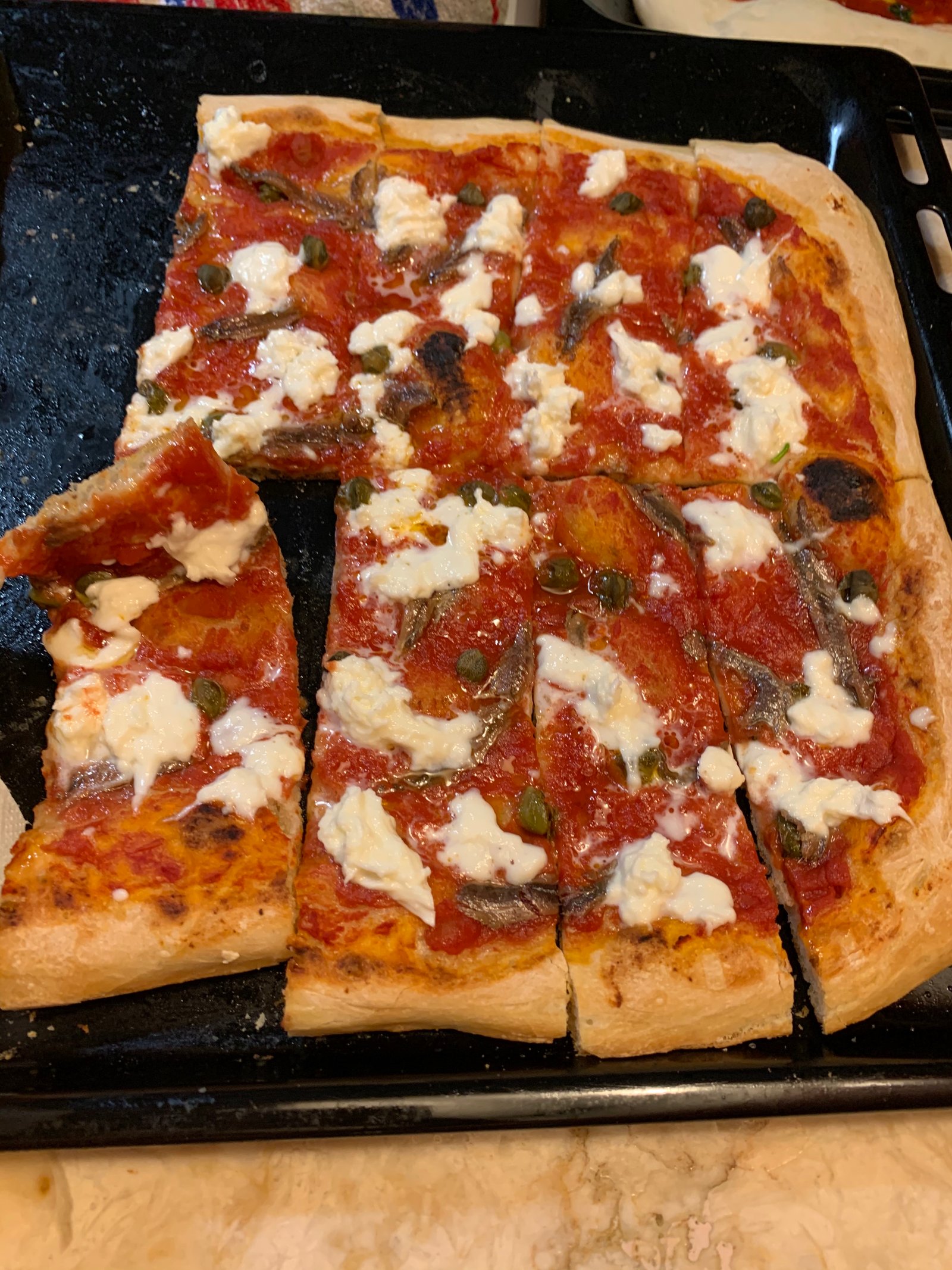 Esta sessão de pizza de massa fermentada segue a estrutura tradicional autêntica: