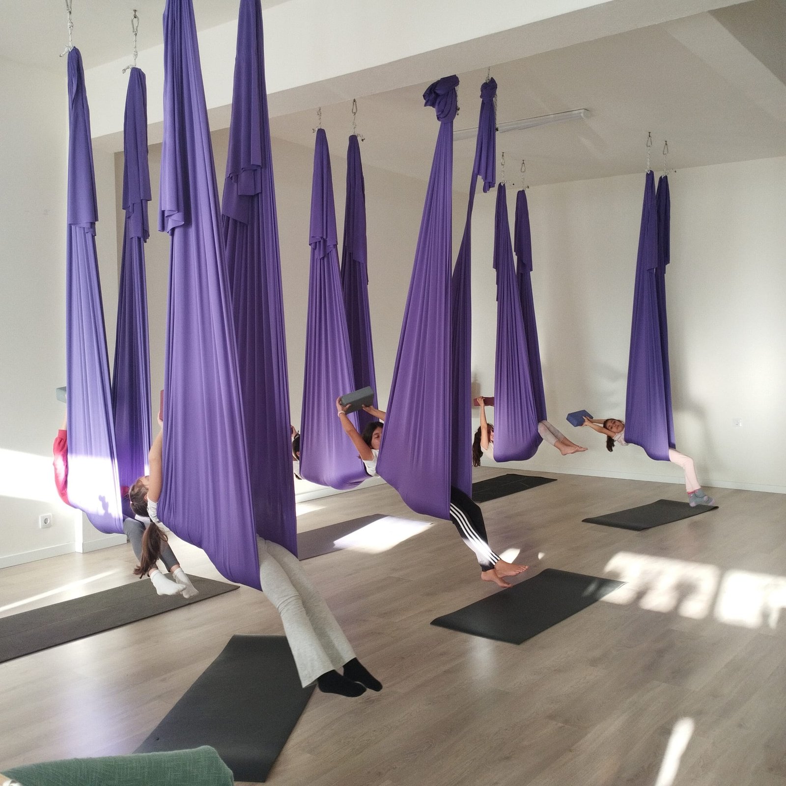 Sessão de yoga aéreo Mini Me and Me totalmente guiada no Espaço da Susana