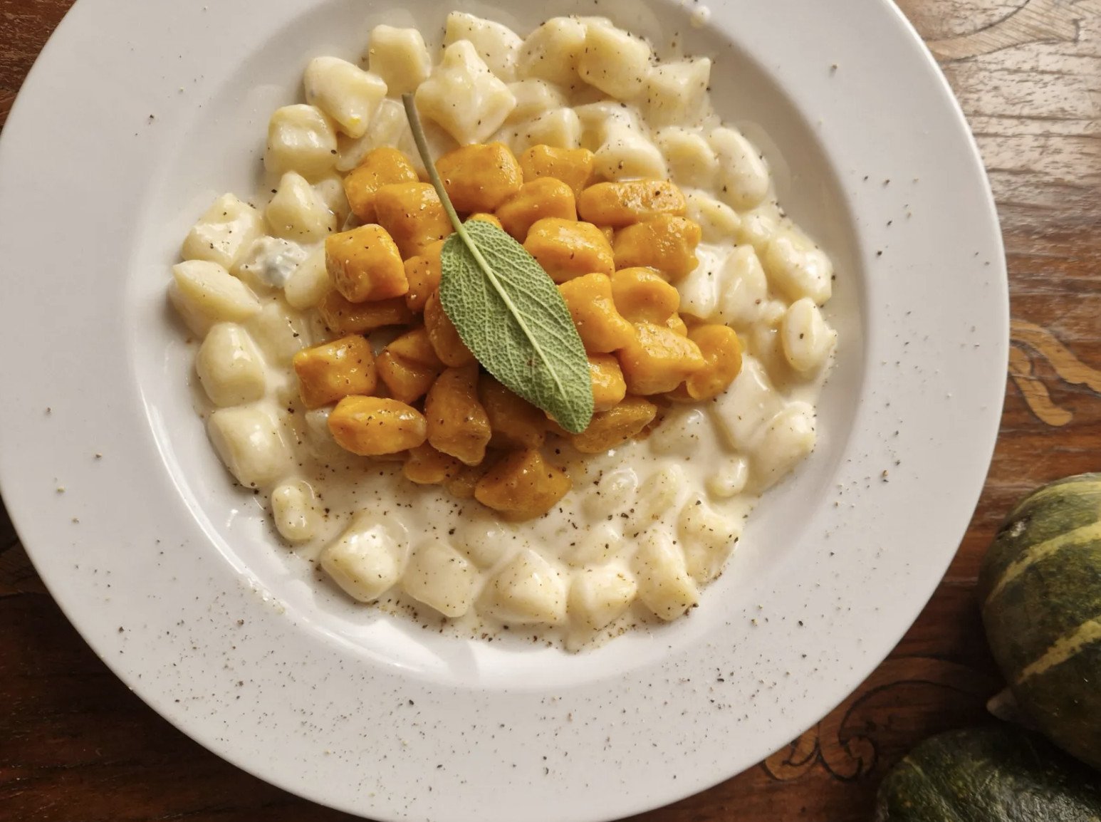 A massa fresca é feita de farinha e ovos, moldada no formato que escolheres - tagliatelle, chitarrina ou ravioli. Os gnocchi são bolinhos de batata macios, com uma textura mais leve e fofa. Não tens a certeza de qual escolher? Manda-me uma mensagem e eu ajudo-te a decidir antes do dia, com base nas tuas preferências de gosto.
