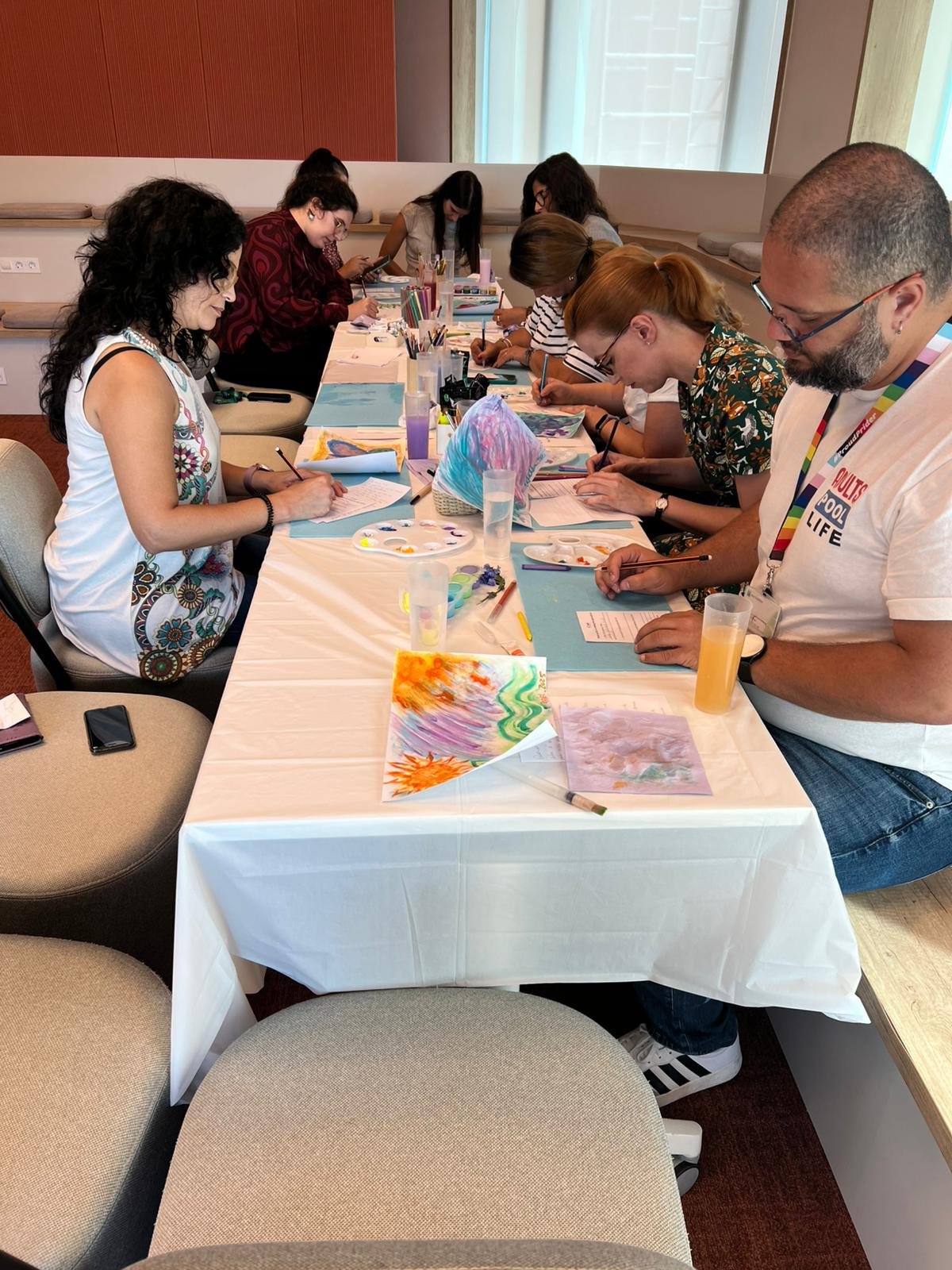 • Tela colaborativa: Uma grande tela pintada por todos como lembrança única