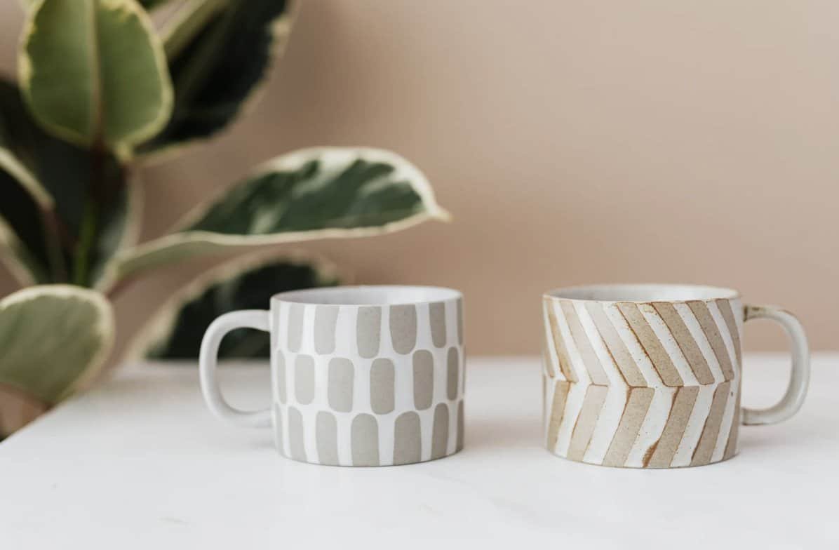 ☕️ Todos os materiais e orientações para criar e decorar duas canecas de cerâmica para o pequeno-almoço