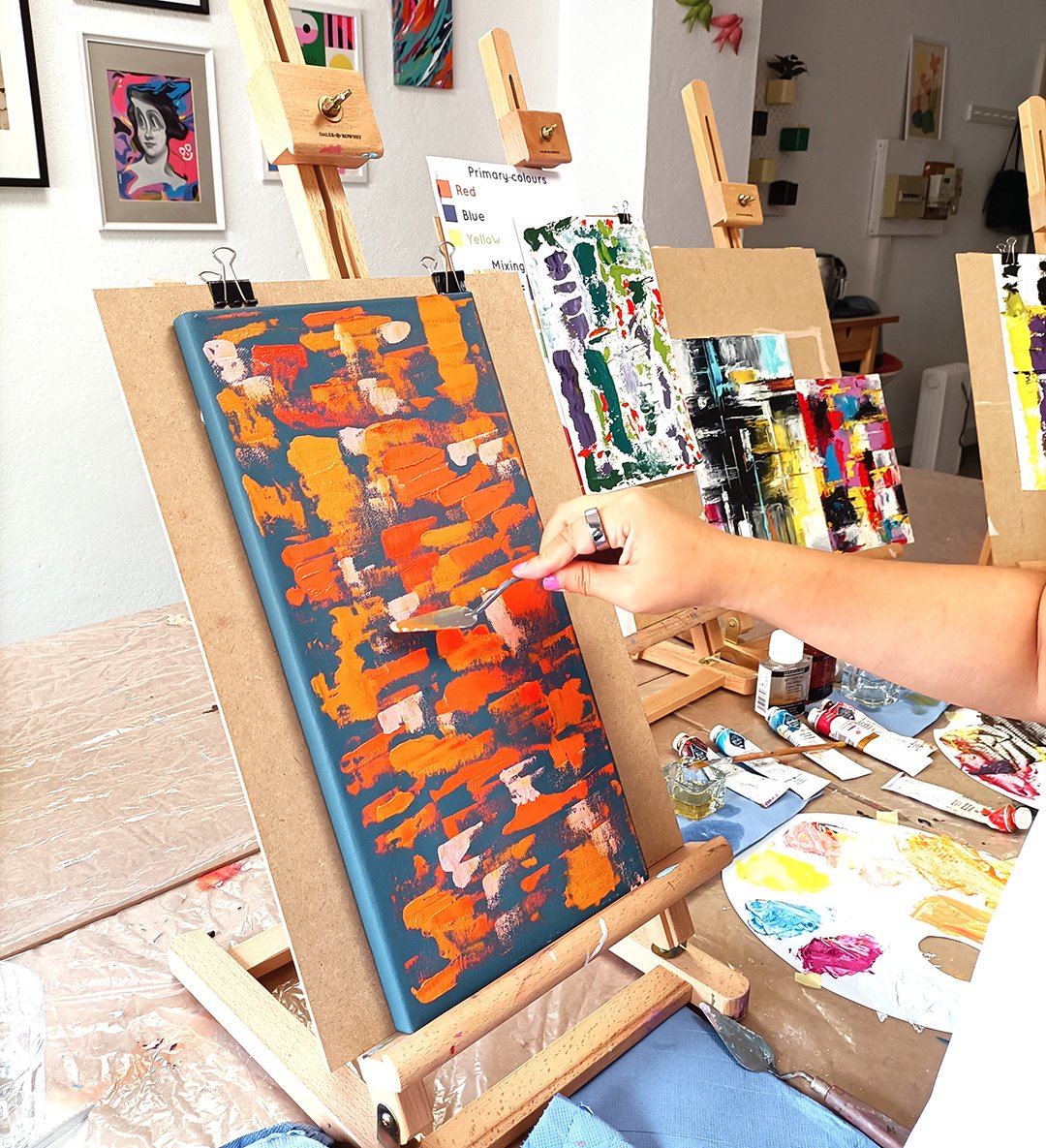 Com a ajuda do nosso artista, vai aprender e explorar a arte abstrata na técnica de pintura a óleo. Vai explorar este estilo apenas usando as espátulas.