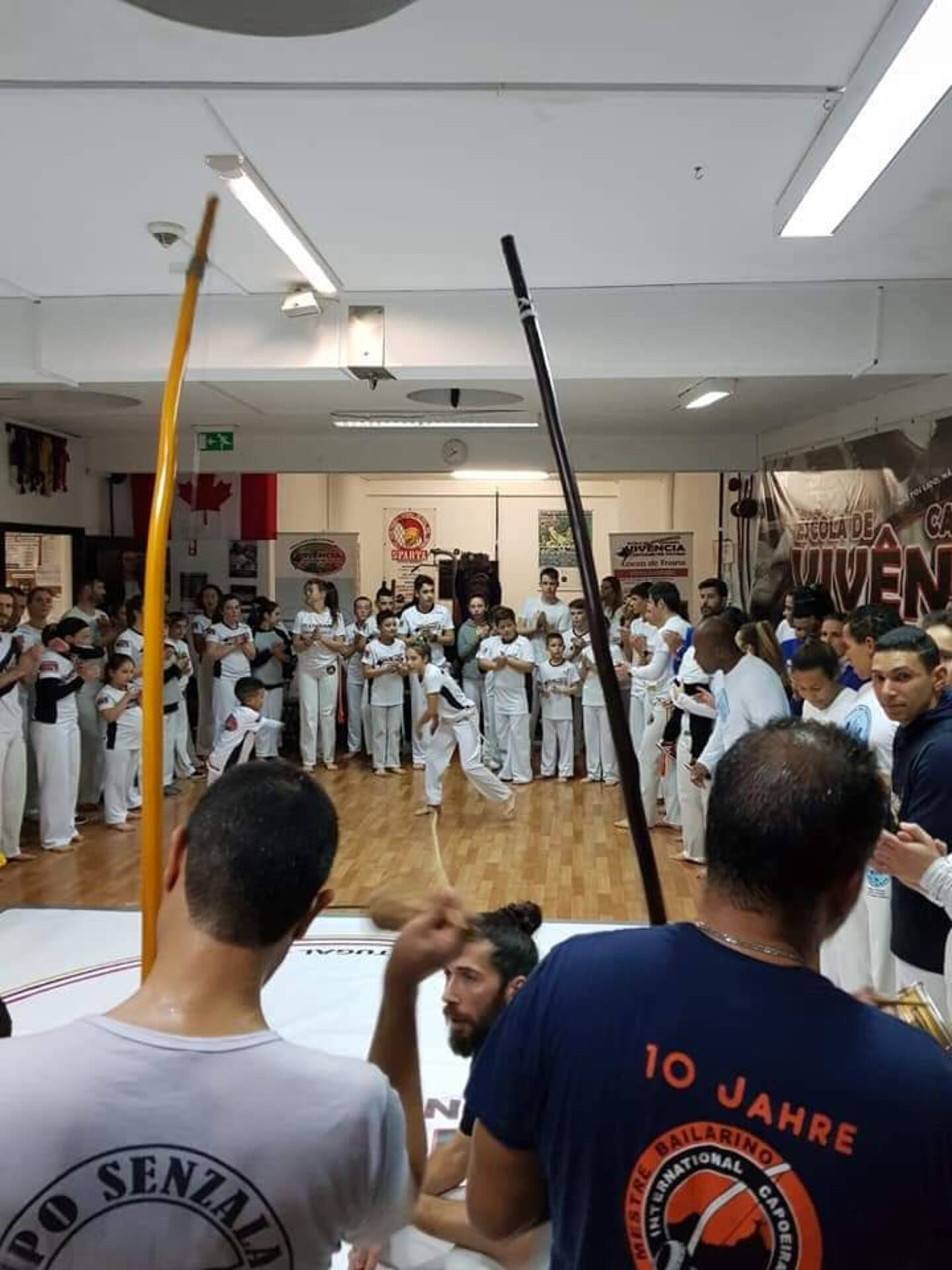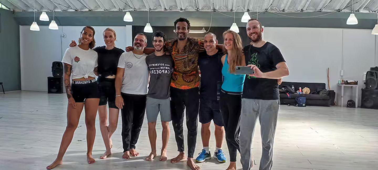 The session moves through the core elements of a beginner capoeira practice in sequence: a warm-up and stretching to prepare the body, the ginga as the foundational movement of capoeira, basic strikes and movements, teaching sequences that build understanding progressively, and the cantigas, the songs that are inseparable from capoeira practice and give it its distinctive rhythm and cultural depth. All you need is comfortable sports clothing, a willingness to try and the belief that anything is possible, including seeing the world upside down.
