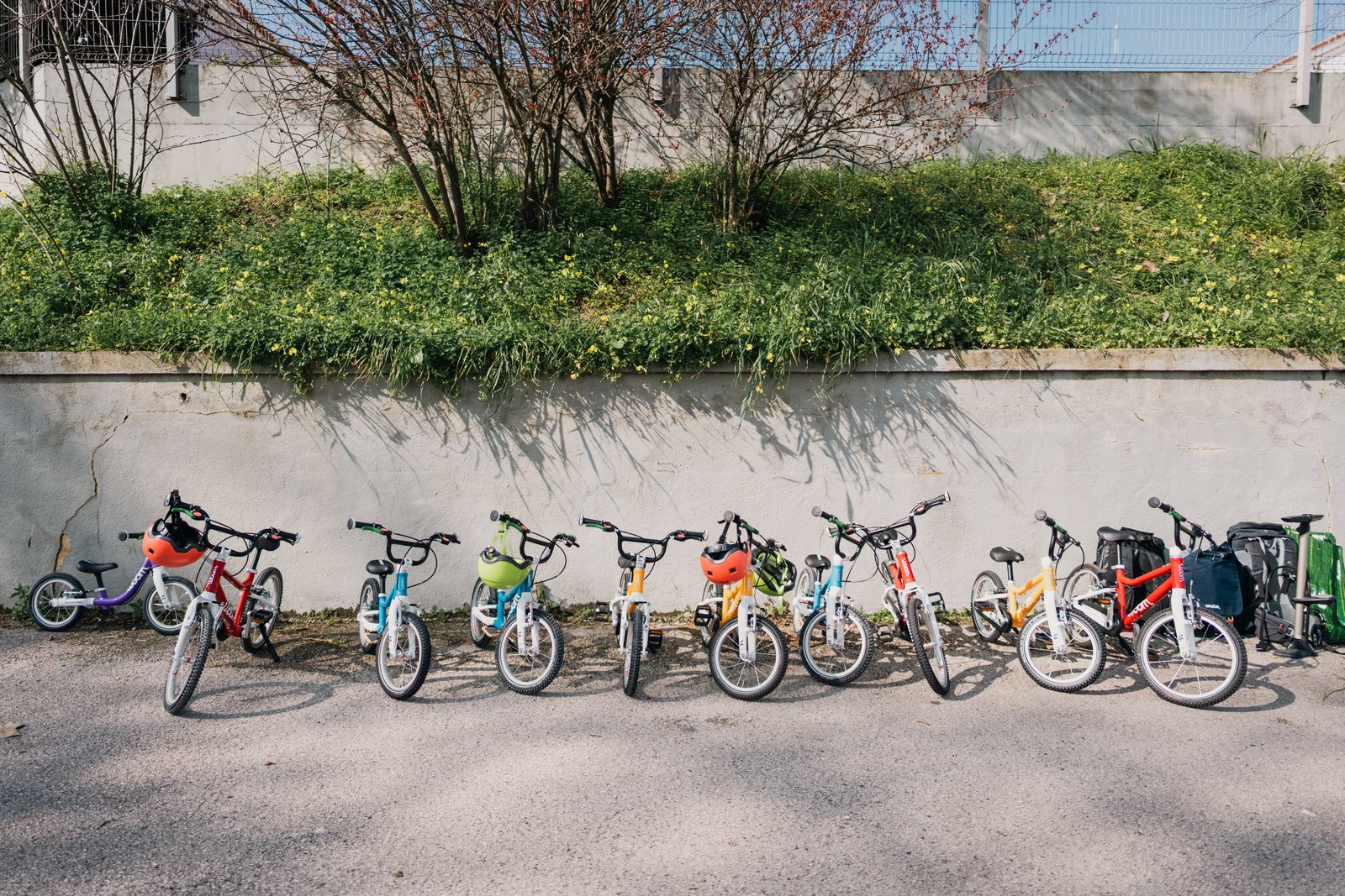 All bikes are provided by Escola de Bicicleta da Cenas a Pedal and are high quality Woom models, available with and without pedals to match different ages and stages. No need to bring anything.