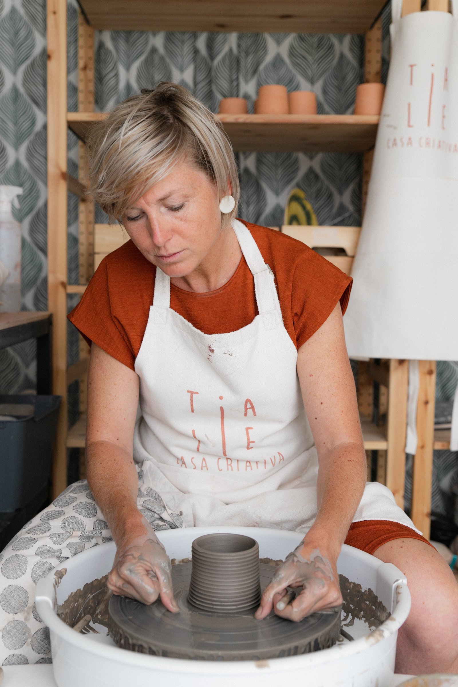 At Tia Lie Casa Criativa I celebrate creativity in all its forms — whether it’s wheel-thrown pottery, hand-built pieces, experimental shapes or vibrant colors. Drawing on my years of teaching experience, I guide participants patiently and joyfully, helping them grow, take risks, make mistakes … and above all, have fun. I create handmade tableware, unique ceramic jewelry, and organize workshops, “clay-tasting parties”, and ceramics-based gatherings for people to connect, learn and create — inspired by the natural beauty and coastal vibes around Ericeira. Each piece is made with care, heart, and love. I’m truly thankful for this journey — and I can’t wait to share my passion and pottery-love with you in my studio in Santo Isidoro.