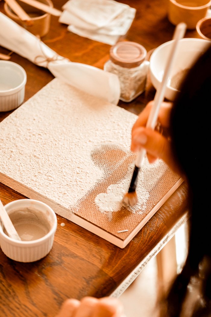 The session begins with a short introduction to the history and techniques of soil painting. You will discover how different types of soil and natural pigments influence color, texture, and composition. After this theoretical part, you will practice sketching on a 19 by 24 cm canvas and then create your own artwork using soil-based paint.